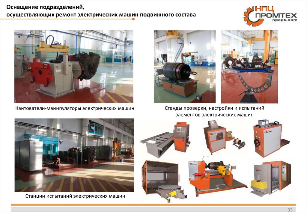 Оснащение подразделений,осуществляющих ремонт электрических машин подвижного состава