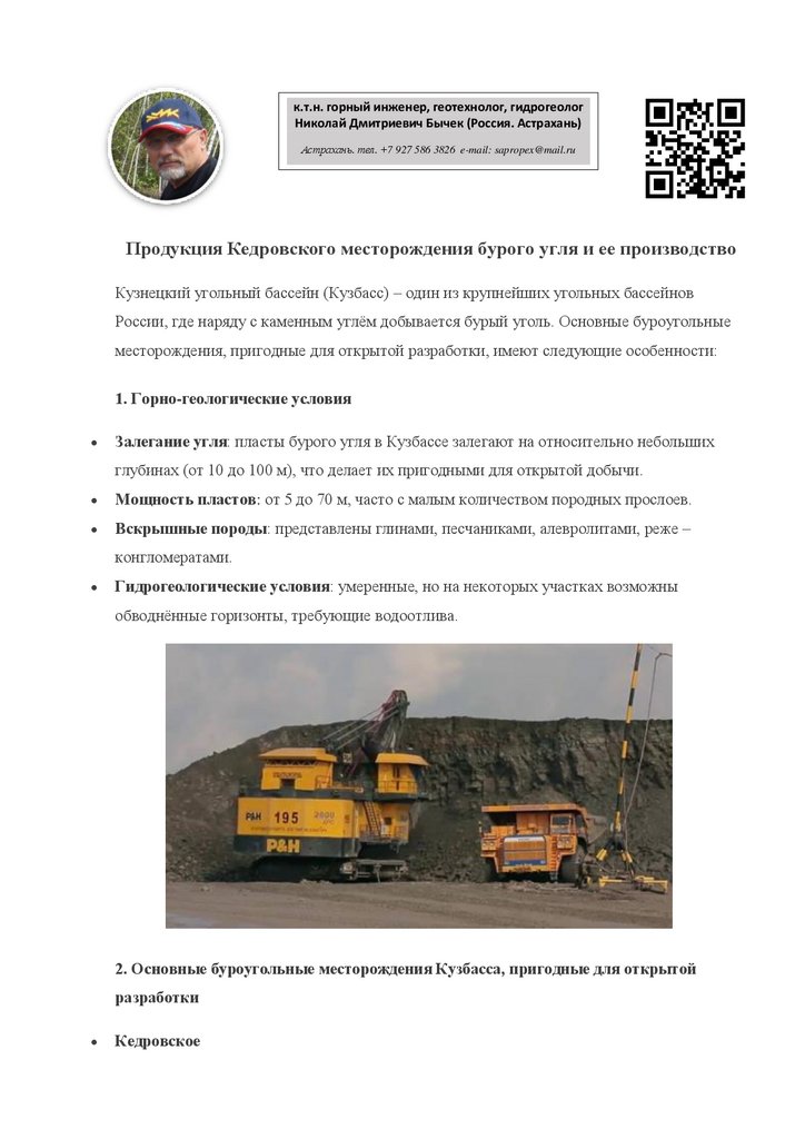 Продукция Кедровского месторождения бурого угля и ее производство