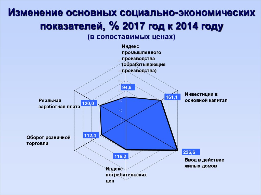 18. Изменение основных социально-экономических показателей, % 2017 год к 2014 году (в сопоставимых ценах)