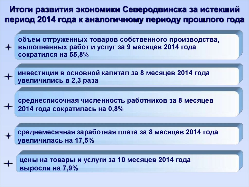 3. Итоги развития экономики Северодвинска за истекший период 2014 года к аналогичному периоду прошлого года
