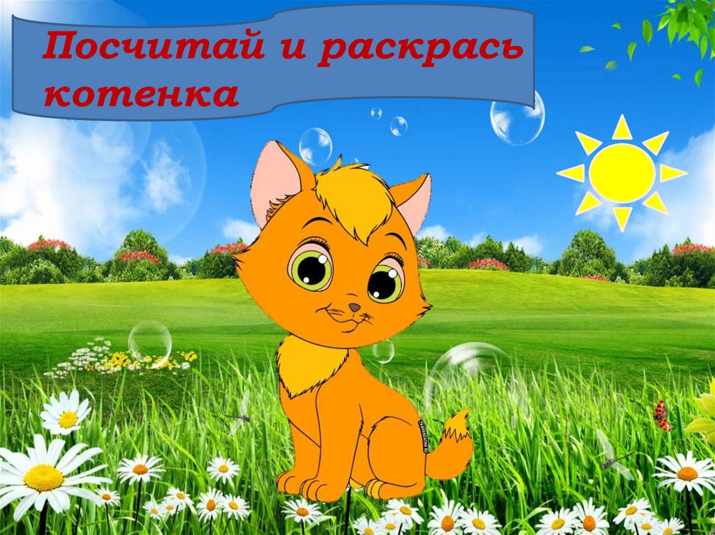 Посчитай и раскрась котенка