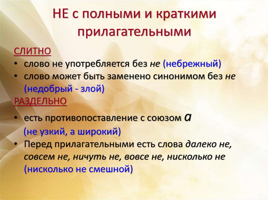ИМЯ ПРИЛАГАТЕЛЬНОЕ11. НЕ с полными и краткими прилагательными