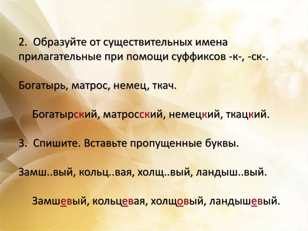 1. От данных слов образуйте существительные сорфограммой «Гласные О-Е после шипящих в