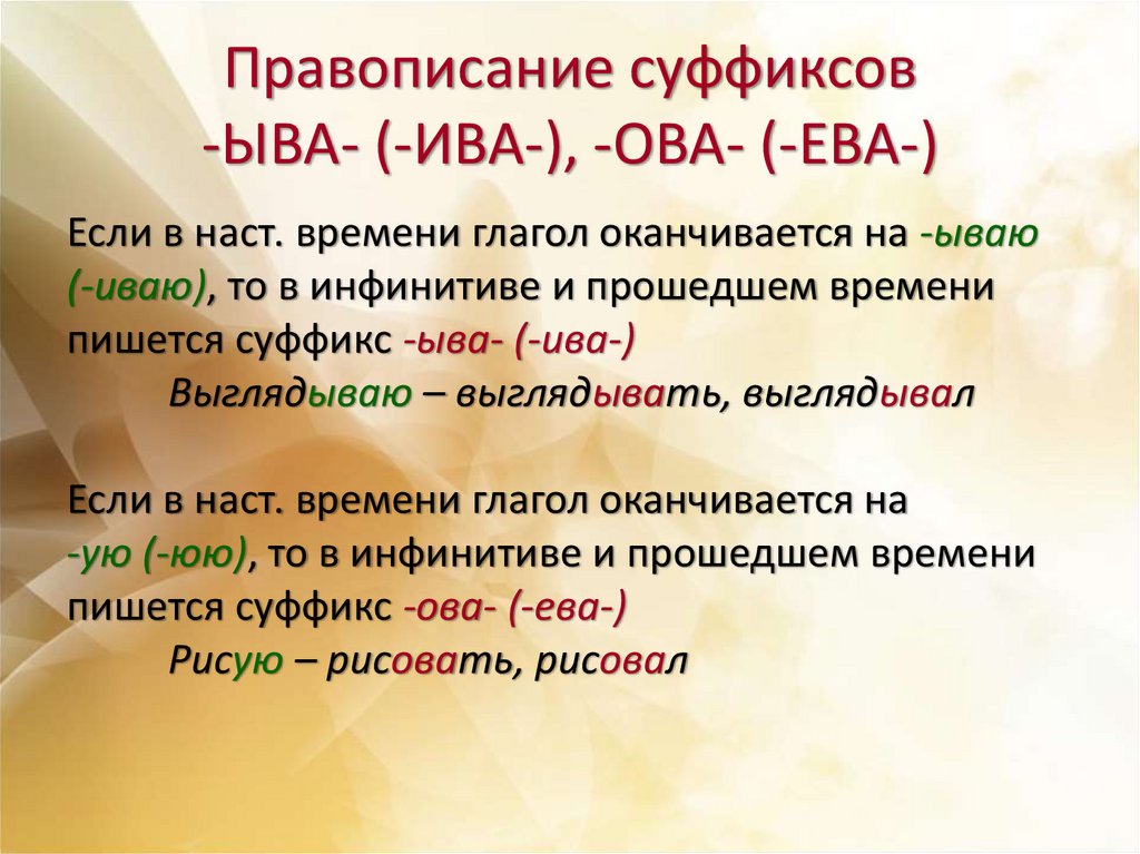 29. Правописание суффиксов -ЫВА- (-ИВА-), -ОВА- (-ЕВА-)