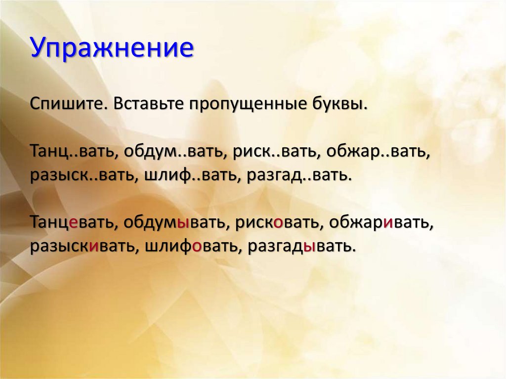 Спишите. Вставьте пропущенные буквы.Танц..вать, обдум..вать, риск..вать, обжар..вать,