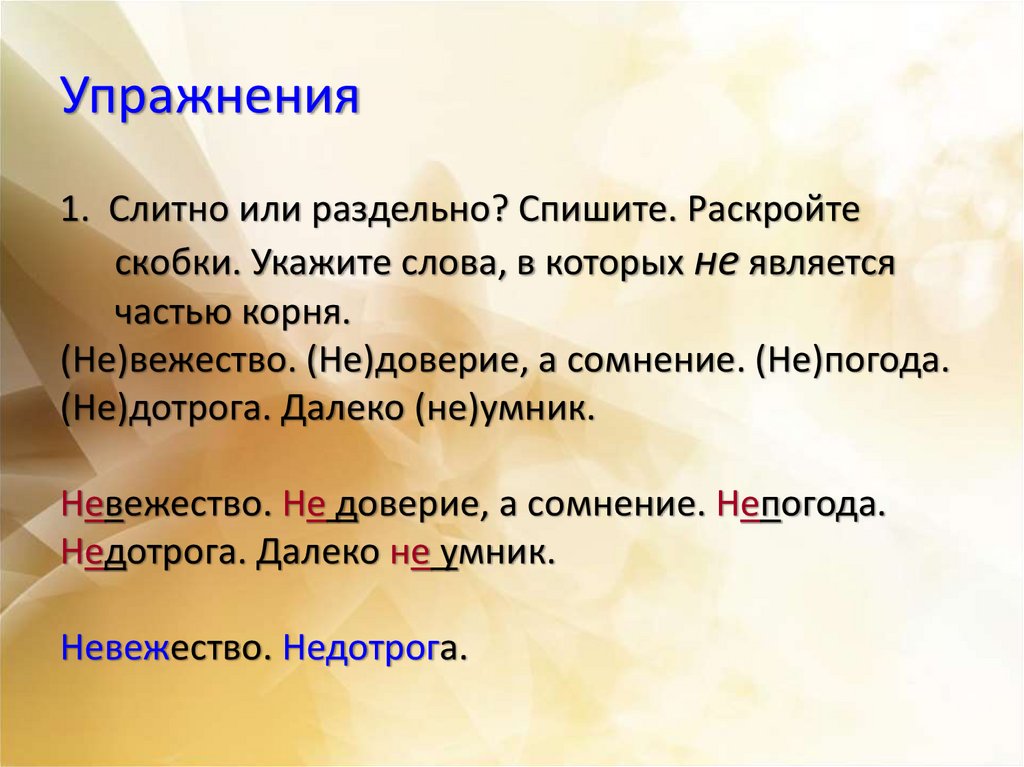 1. Слитно или раздельно? Спишите. Раскройтескобки. Укажите слова, в которых не является
