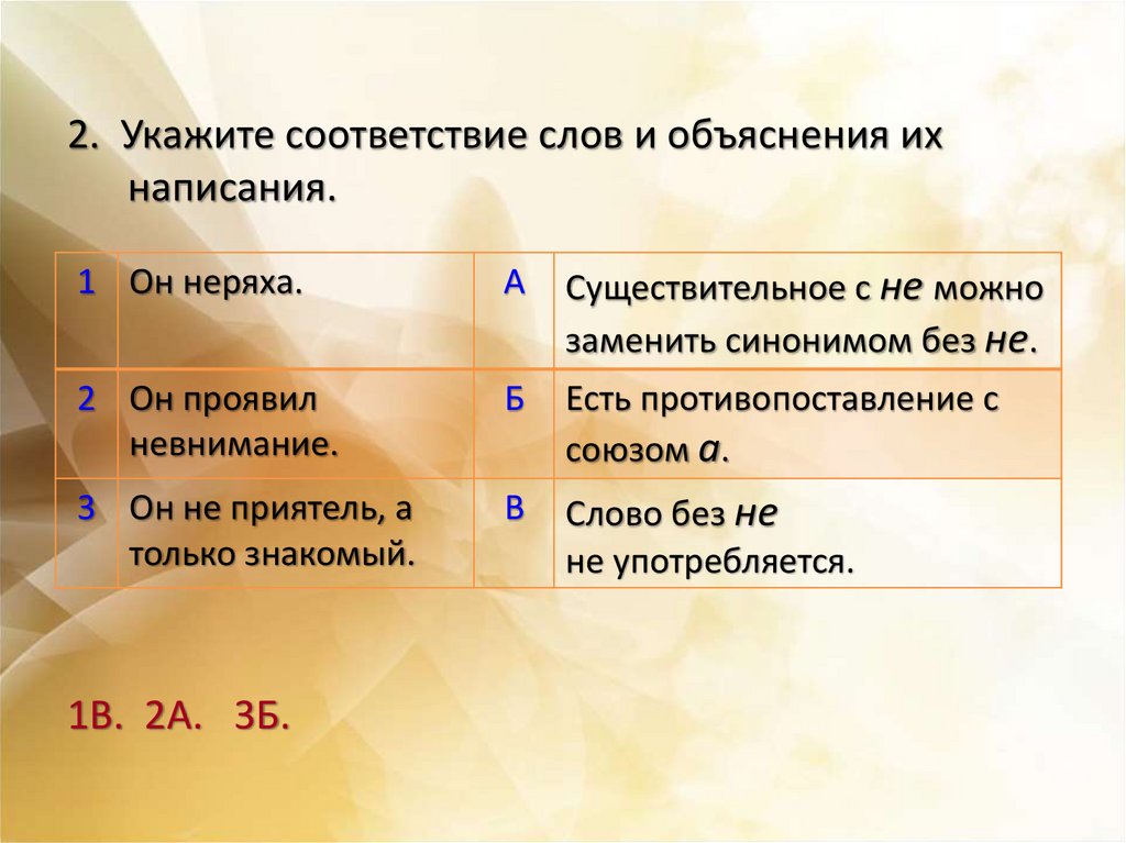2. Укажите соответствие слов и объяснения ихнаписания.