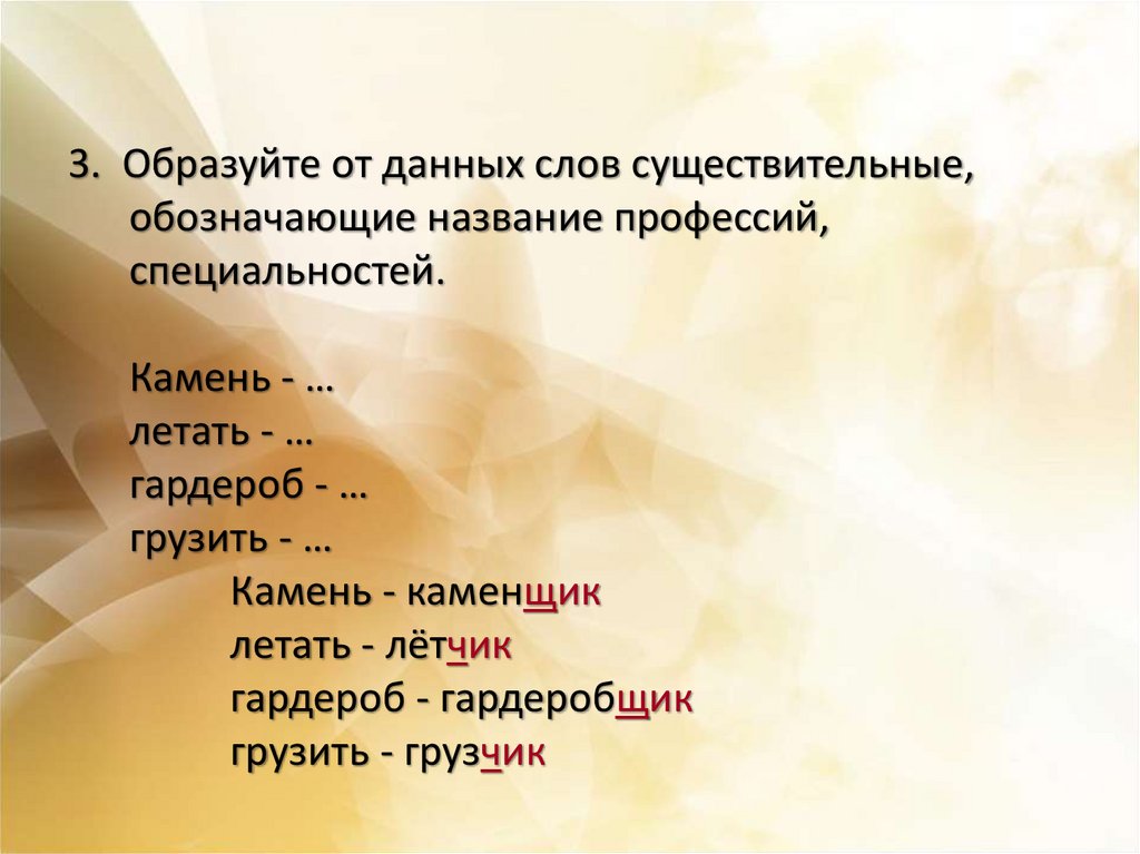 3. Образуйте от данных слов существительные,обозначающие название профессий,