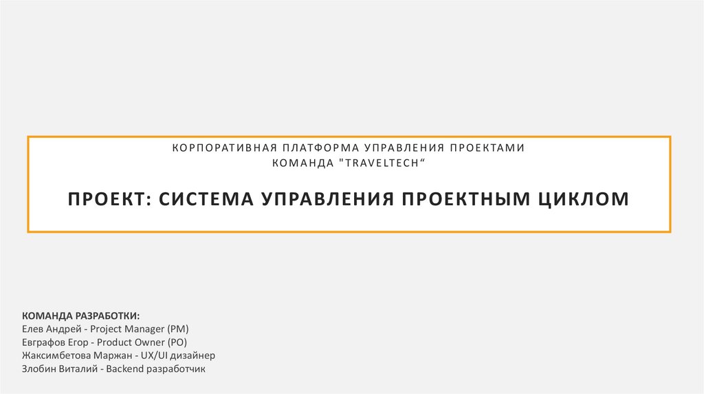 1. Корпоративная платформа управления проектами Команда "TravelTech“ Проект: Система управления проектным циклом