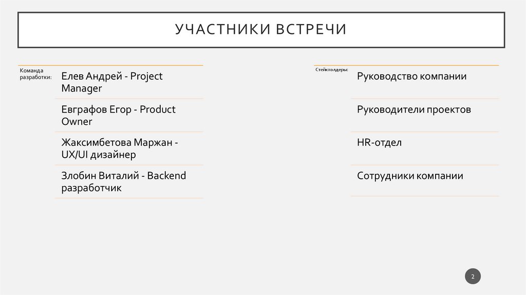 2. УЧАСТНИКИ ВСТРЕЧИ