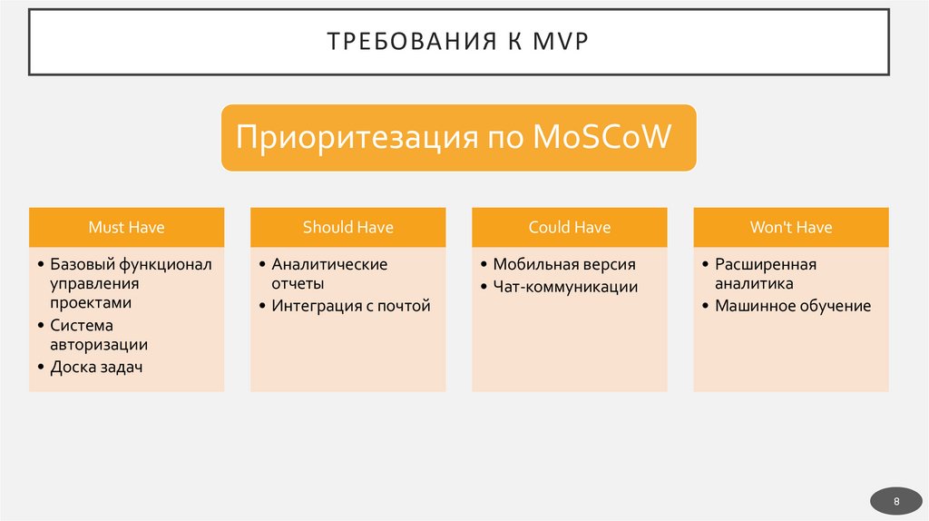 ТРЕБОВАНИЯ К MVPПриоритезация по MoSCoW