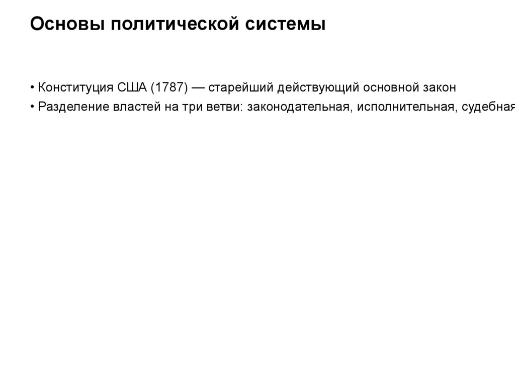 Основы политической системы• Конституция США (1787) — старейший действующий основной закон