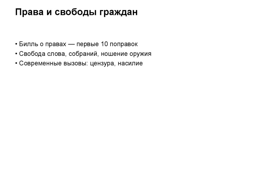 Права и свободы граждан• Билль о правах — первые 10 поправок