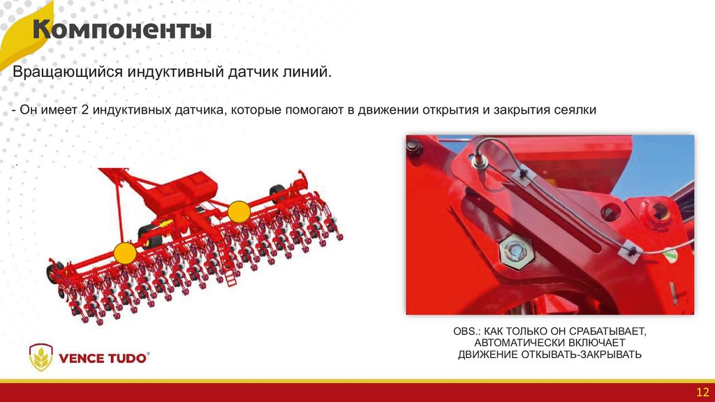 - Он имеет 2 индуктивных датчика, которые помогают в движении открытия и закрытия сеялки