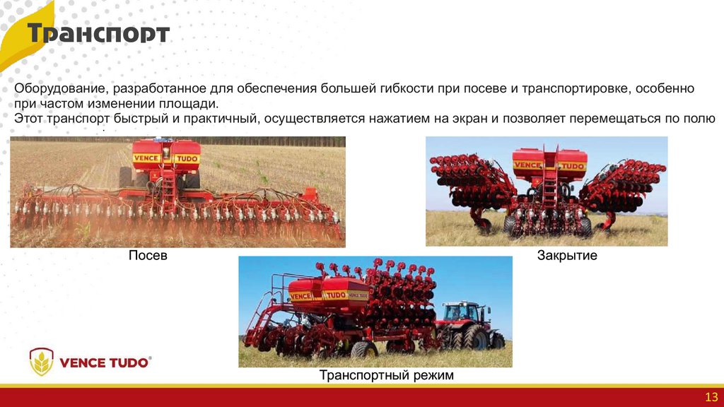 ÒðàíñïîðòОборудование, разработанное для обеспечения большей гибкости при посеве и транспортировке, особенно