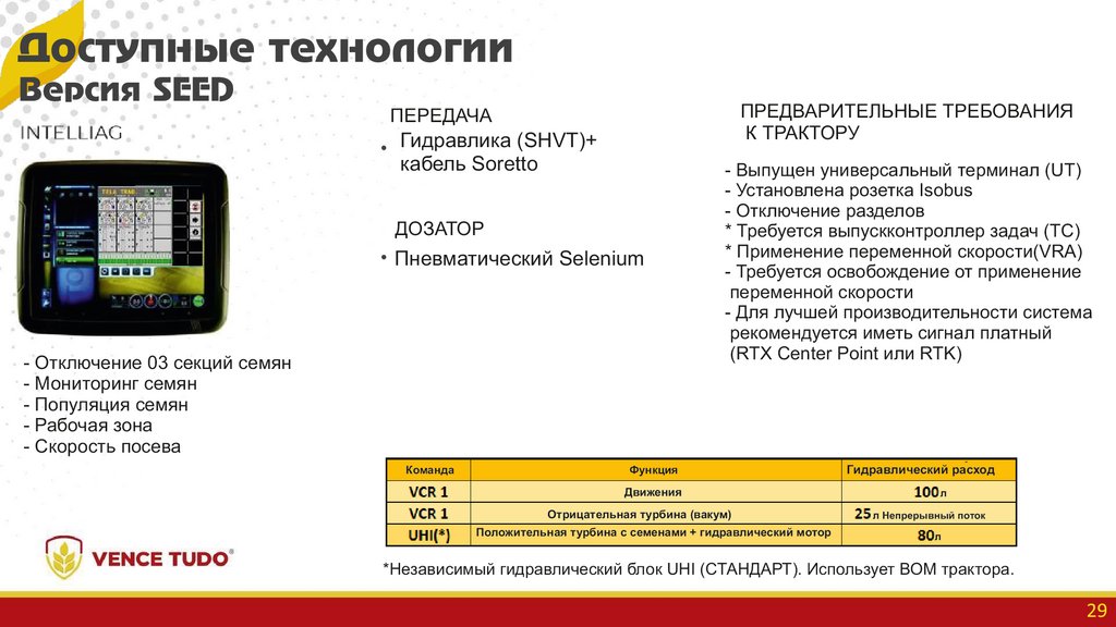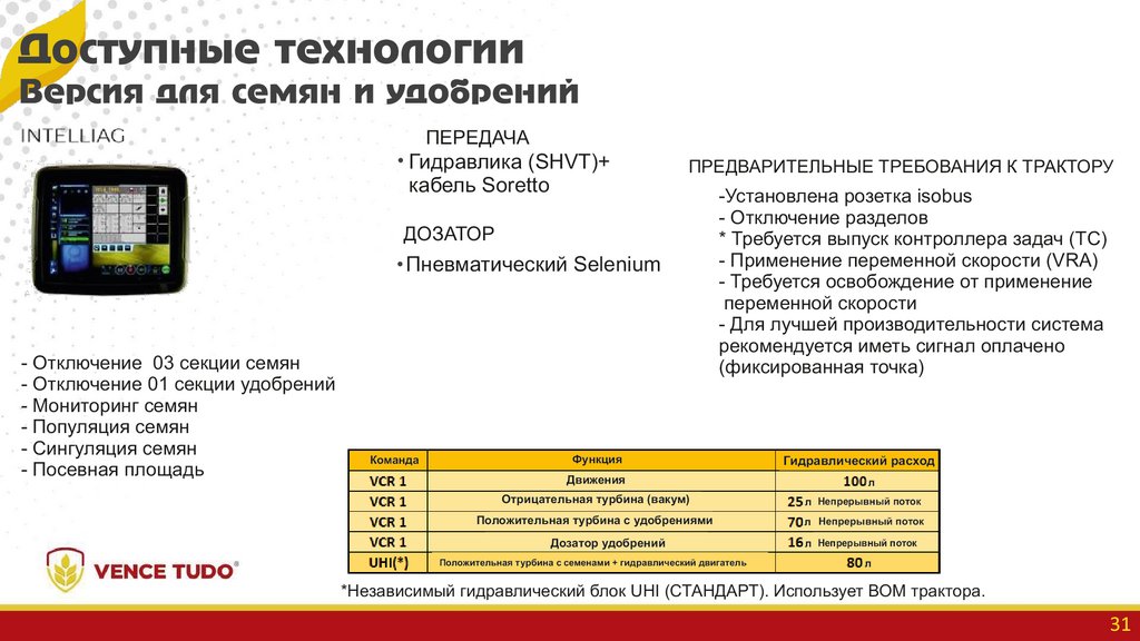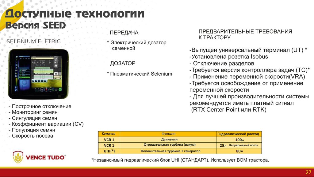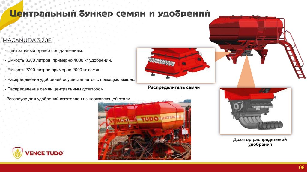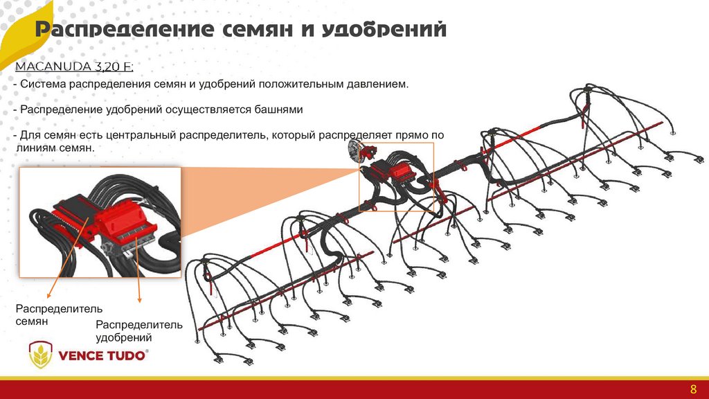 Ðàñïðåäåëåíèå ñåìÿí è óäîáðåíèé- Система распределения семян и удобрений положительным давлением.