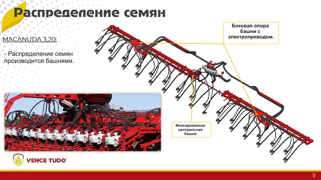 - Для семян есть центральный распределитель, который распределяет прямо по