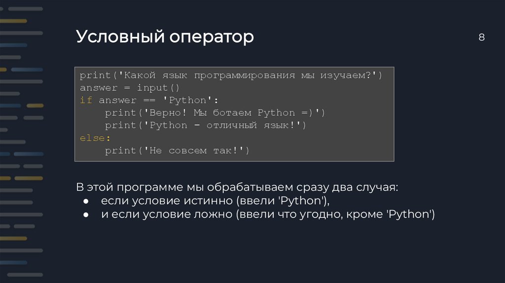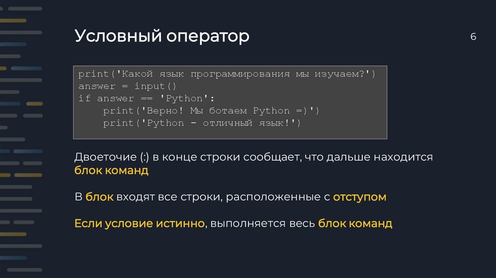 Условный операторprint('Какой язык программирования мы изучаем?')