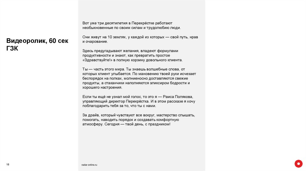 [0:00—0:08]Вот уже три десятилетия в Перекрёстке работают