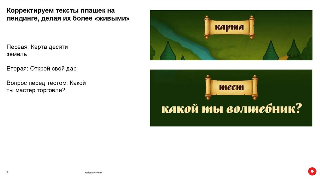Корректируем тексты плашек налендинге, делая их более «живыми»
