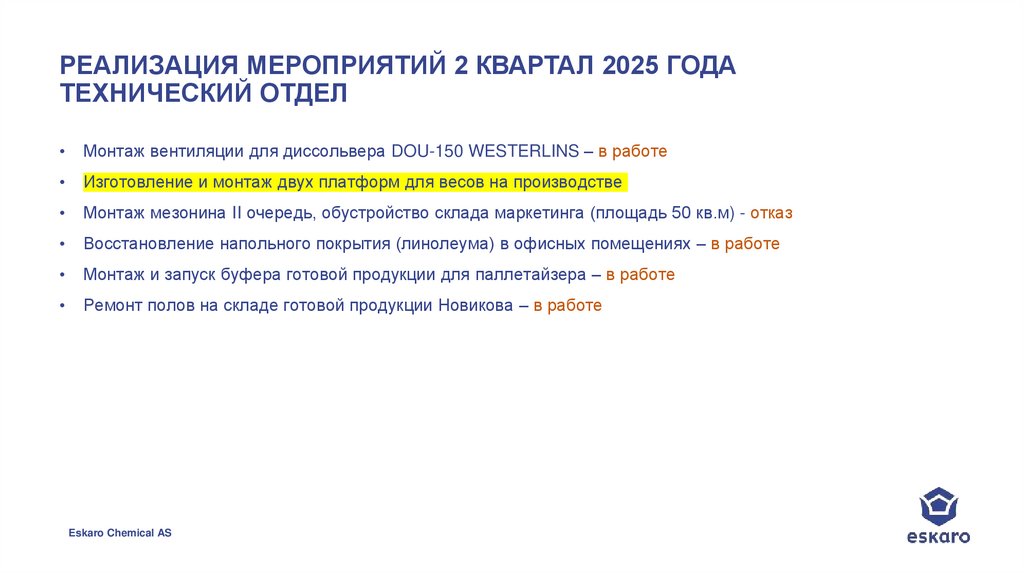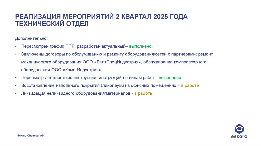РЕАЛИЗАЦИЯ МЕРОПРИЯТИЙ 2 КВАРТАЛ 2025 ГОДАТЕХНИЧЕСКИЙ ОТДЕЛ