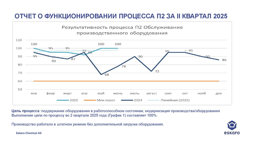 ОТЧЕТ О ФУНКЦИОНИРОВАНИИ ПРОЦЕССА П2 ЗА II КВАРТАЛ 2025Цель процесса: поддержание оборудования в работоспособном состоянии, модернизация производства/оборудования
