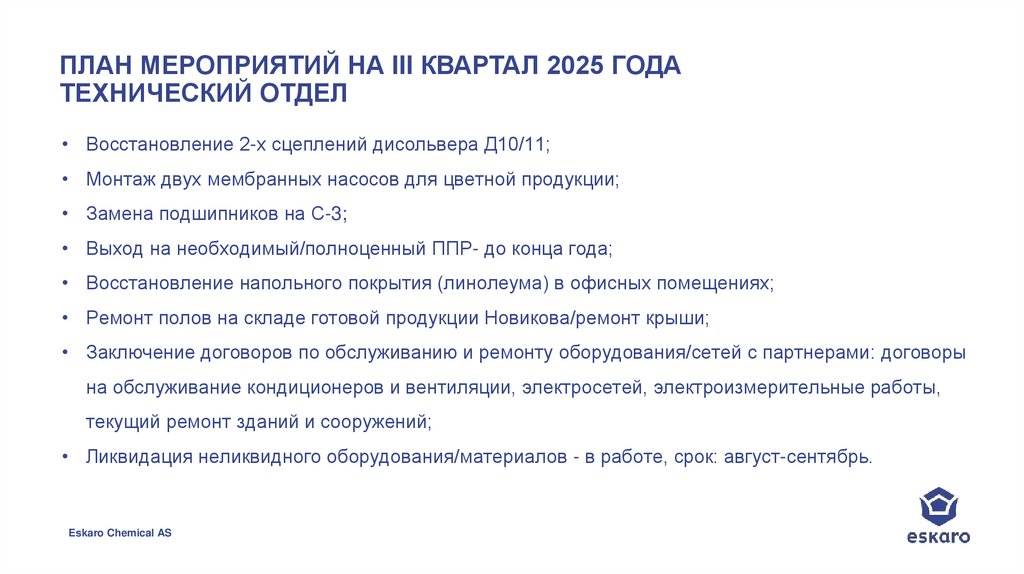ПЛАН МЕРОПРИЯТИЙ НА III КВАРТАЛ 2025 ГОДАТЕХНИЧЕСКИЙ ОТДЕЛ