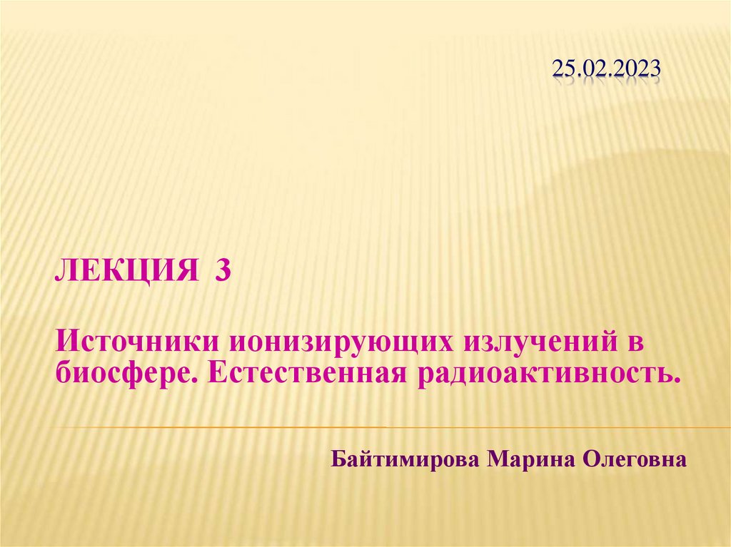 ЛЕКЦИЯ 3Источники ионизирующих излучений в
