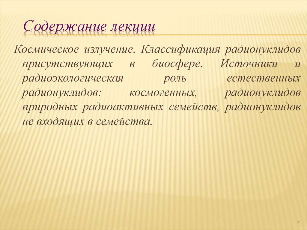 Источники ионизирующих излучений в биосфере. Естественная радиоактивность. Лекция 3