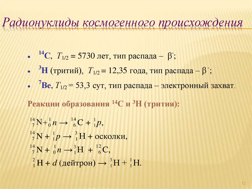 Космическое излучение. Классификация радионуклидовприсутствующих в биосфере. Источники и