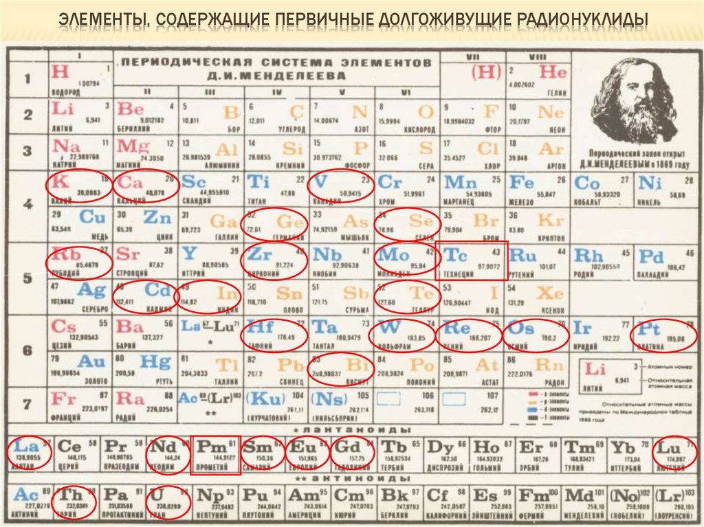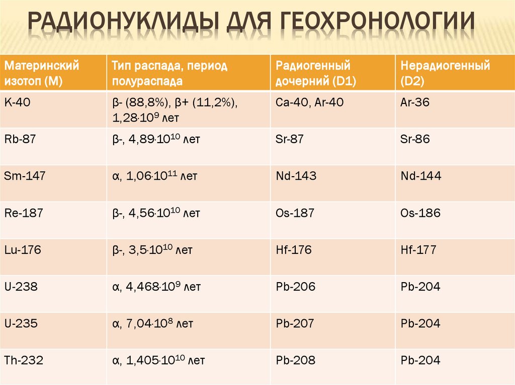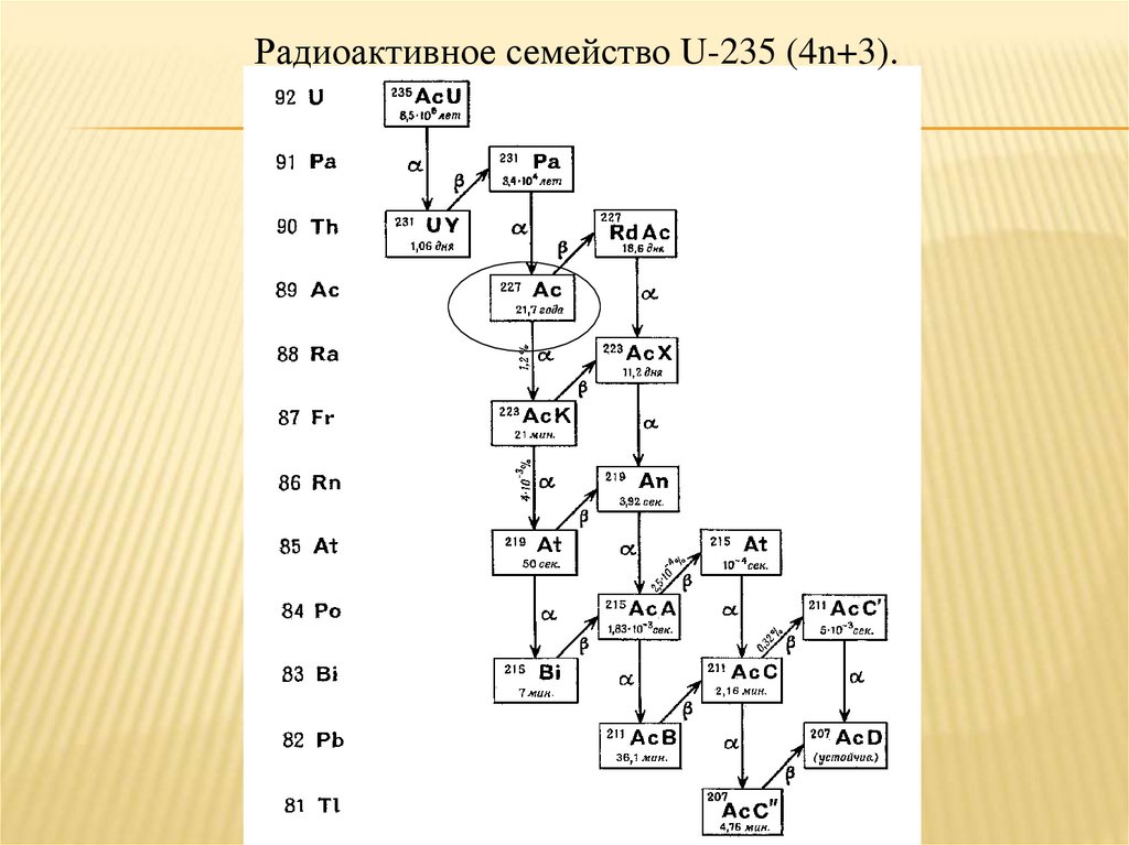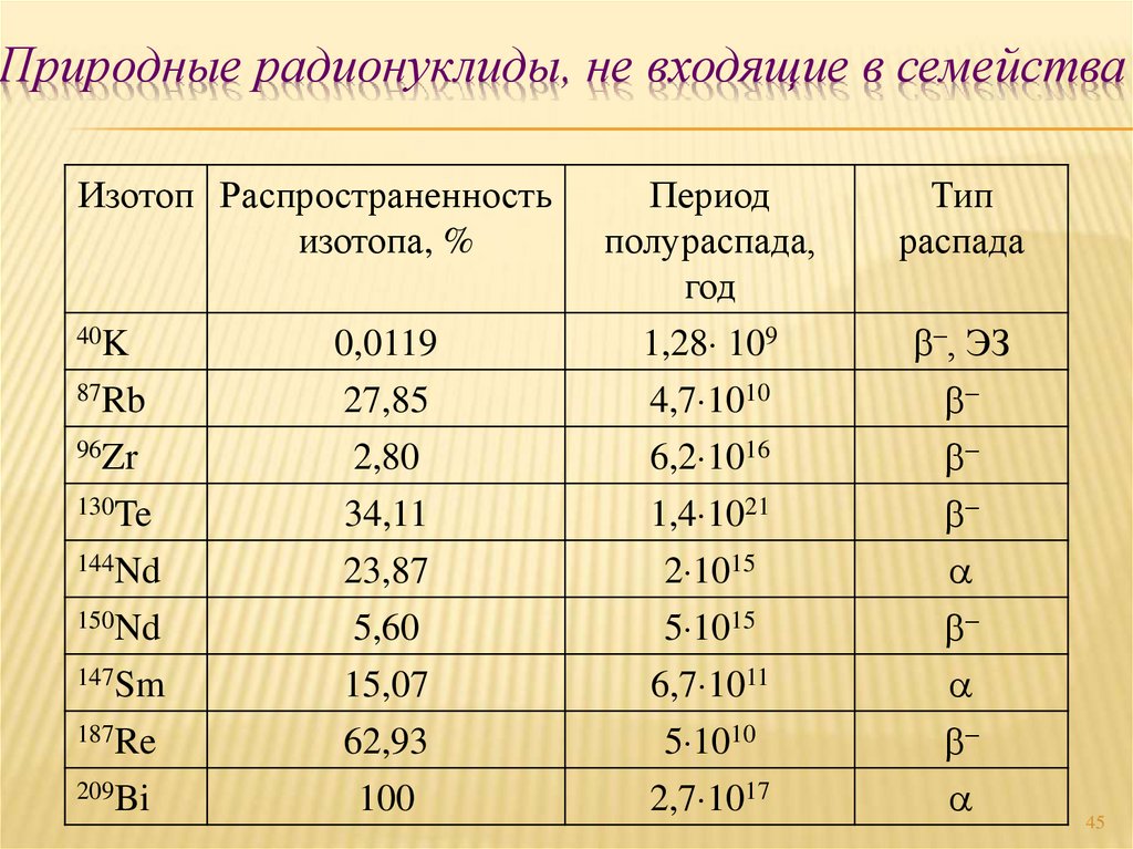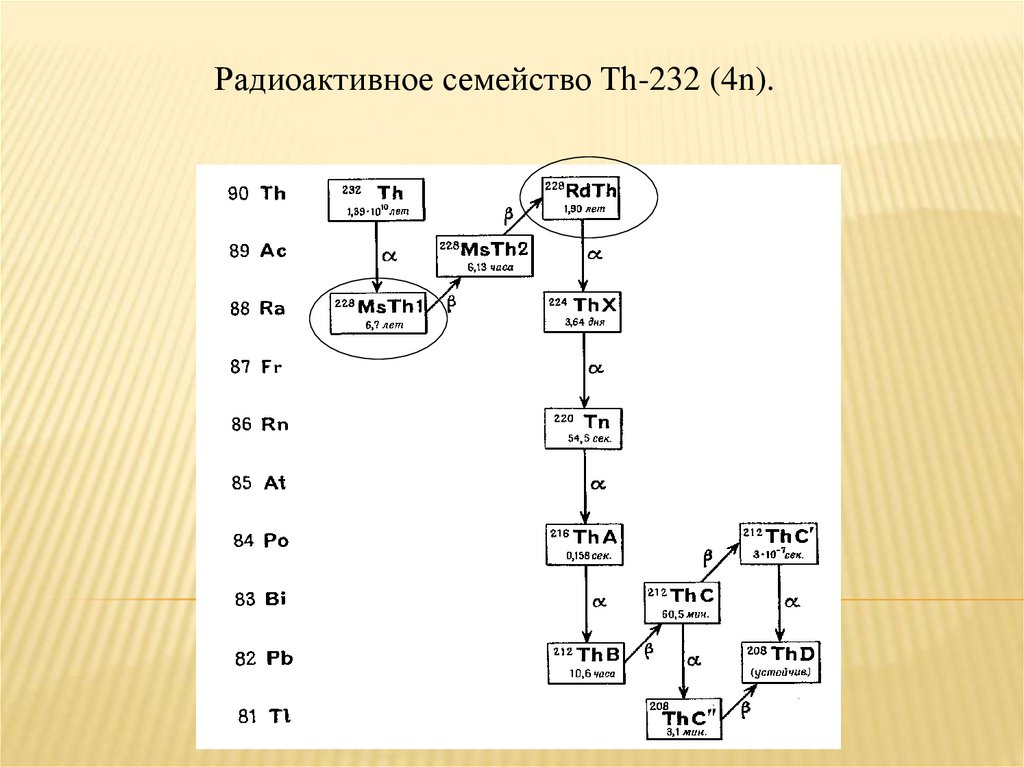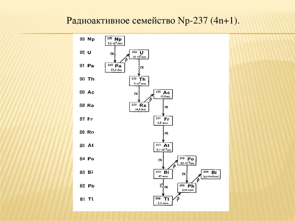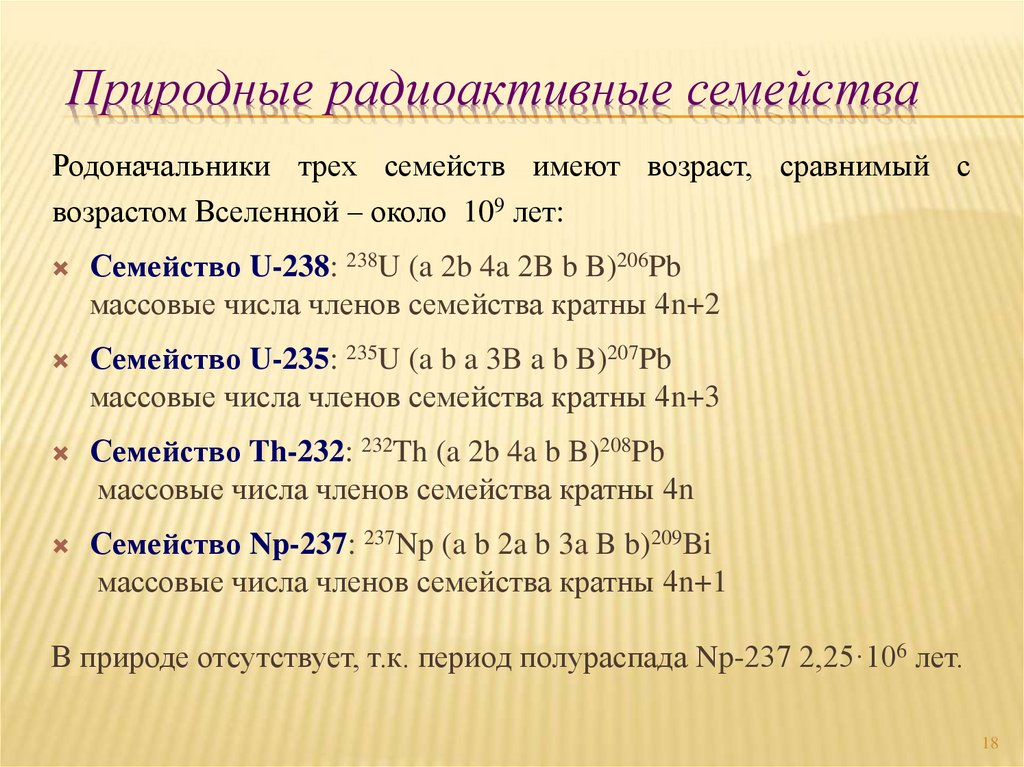 природных радиоактивных семейств, радионуклидов
