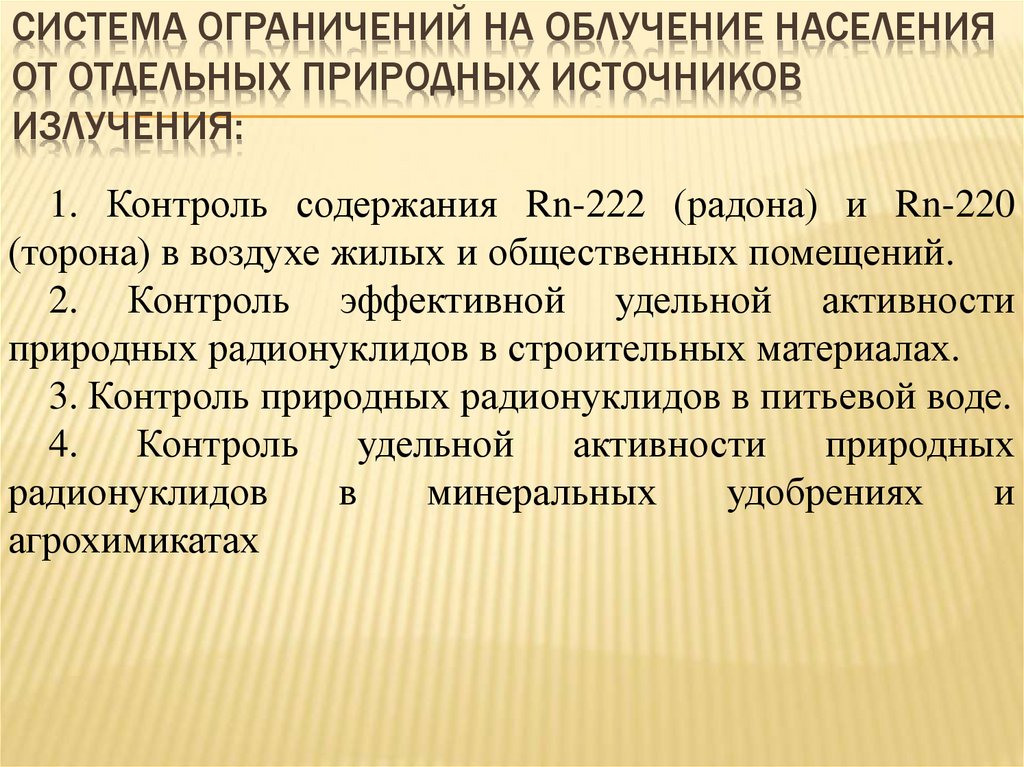СИСТЕМА ОГРАНИЧЕНИЙ НА ОБЛУЧЕНИЕ НАСЕЛЕНИЯОТ ОТДЕЛЬНЫХ ПРИРОДНЫХ ИСТОЧНИКОВ