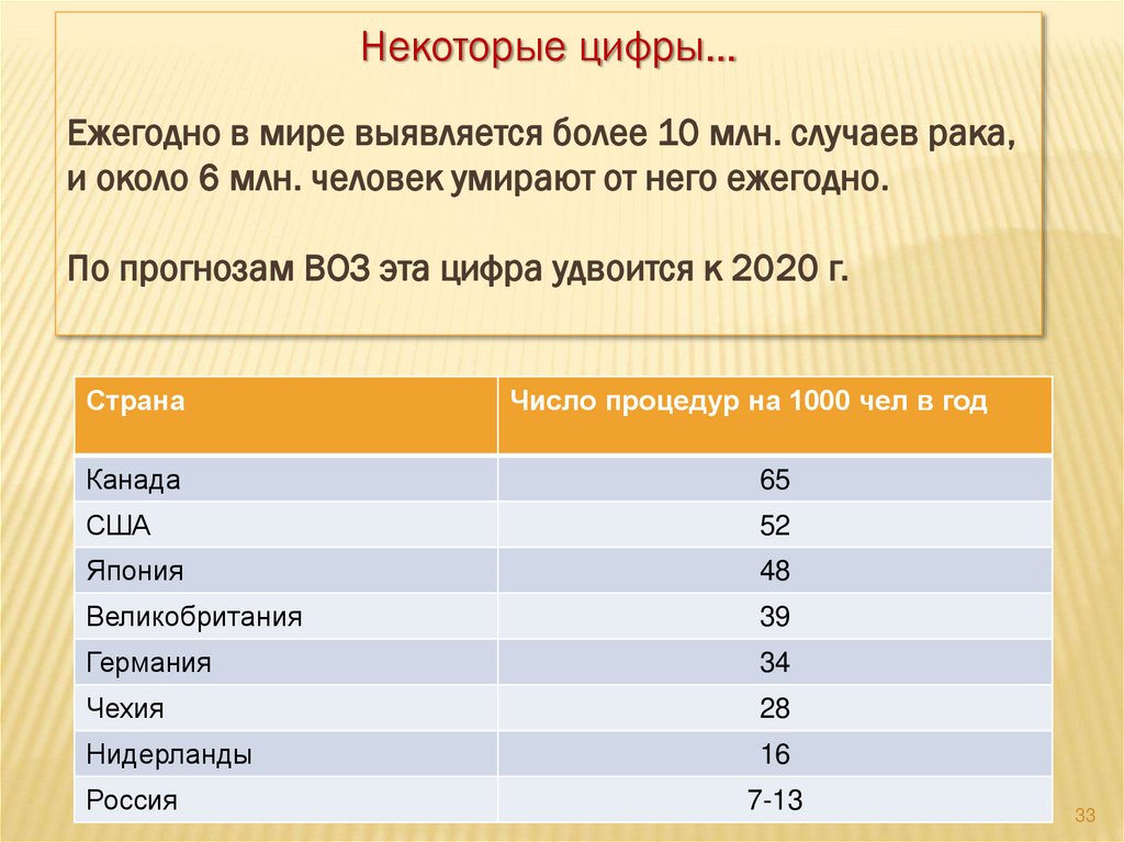 Некоторые цифры…Ежегодно в мире выявляется более 10 млн. случаев рака,