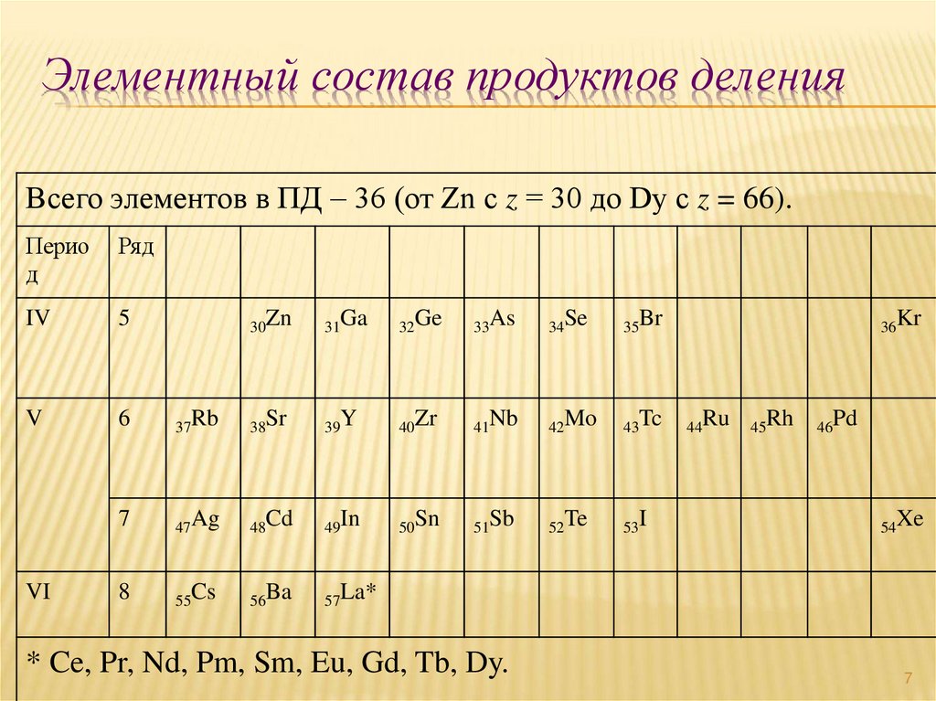 7. Элементный состав продуктов деления
