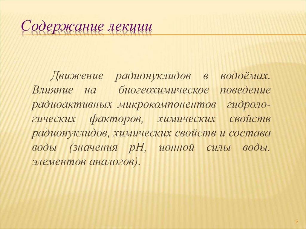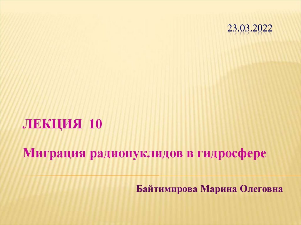 ЛЕКЦИЯ 10Миграция радионуклидов в гидросфере