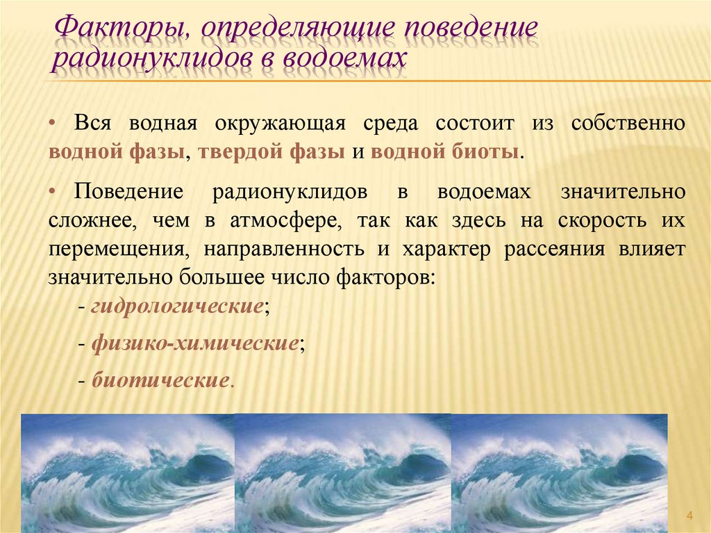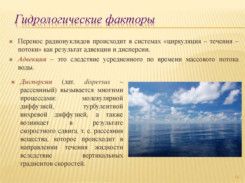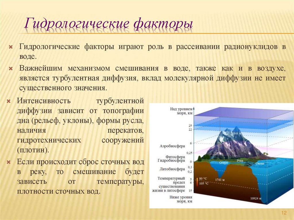 Гидрологические факторы играют роль в рассеивании радионуклидов вводе.