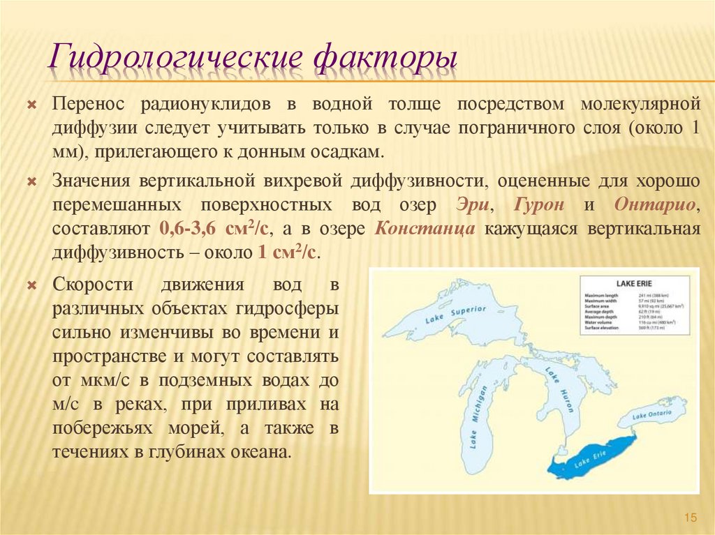 радиоактивных микрокомпонентов гидрологических факторов, химических свойств