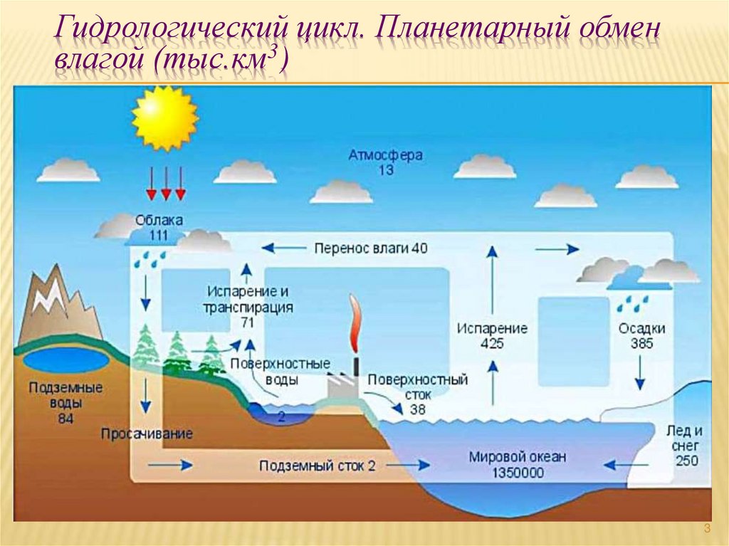 3. Гидрологический цикл. Планетарный обмен влагой (тыс.км3)
