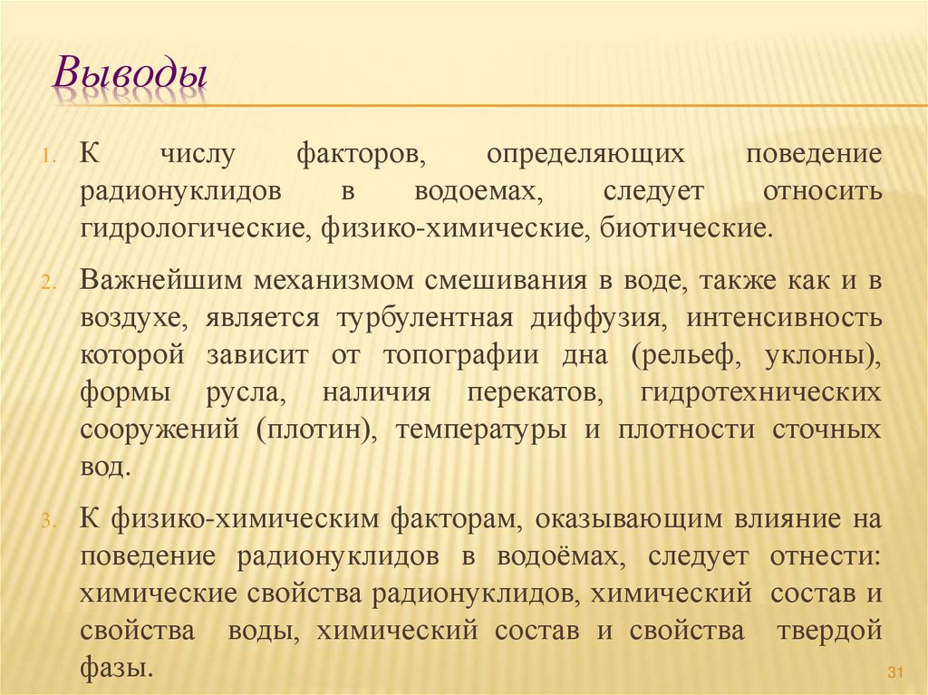 34. Факторы, определяющие поведение радионуклидов в водоемах