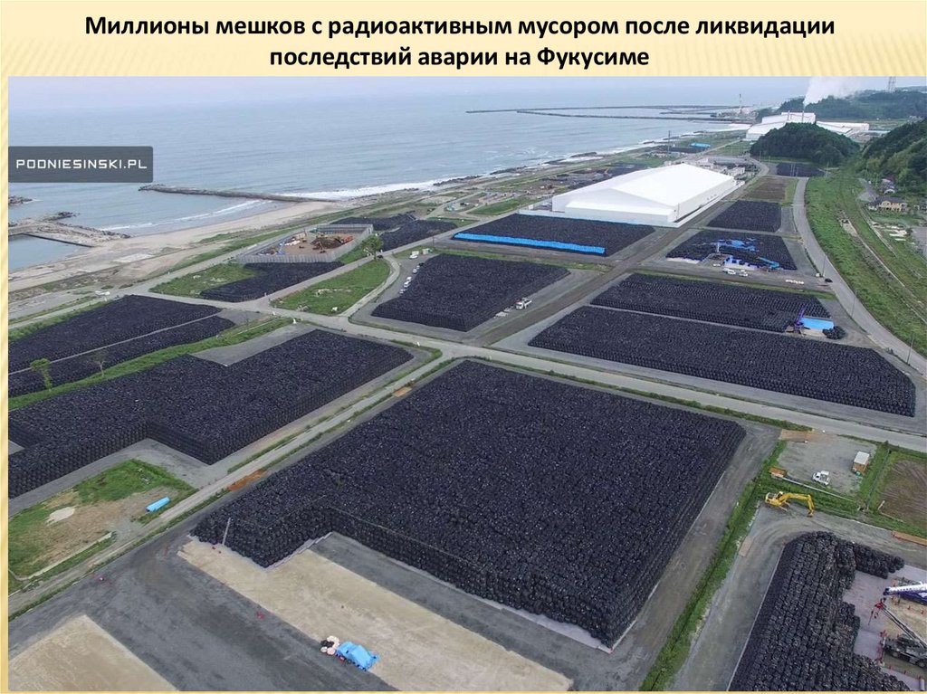 Миллионы мешков с радиоактивным мусором после ликвидациипоследствий аварии на Фукусиме