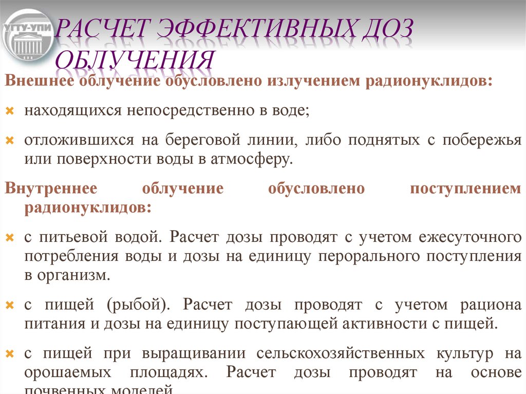РАСЧЕТ ЭФФЕКТИВНЫХ ДОЗОБЛУЧЕНИЯ