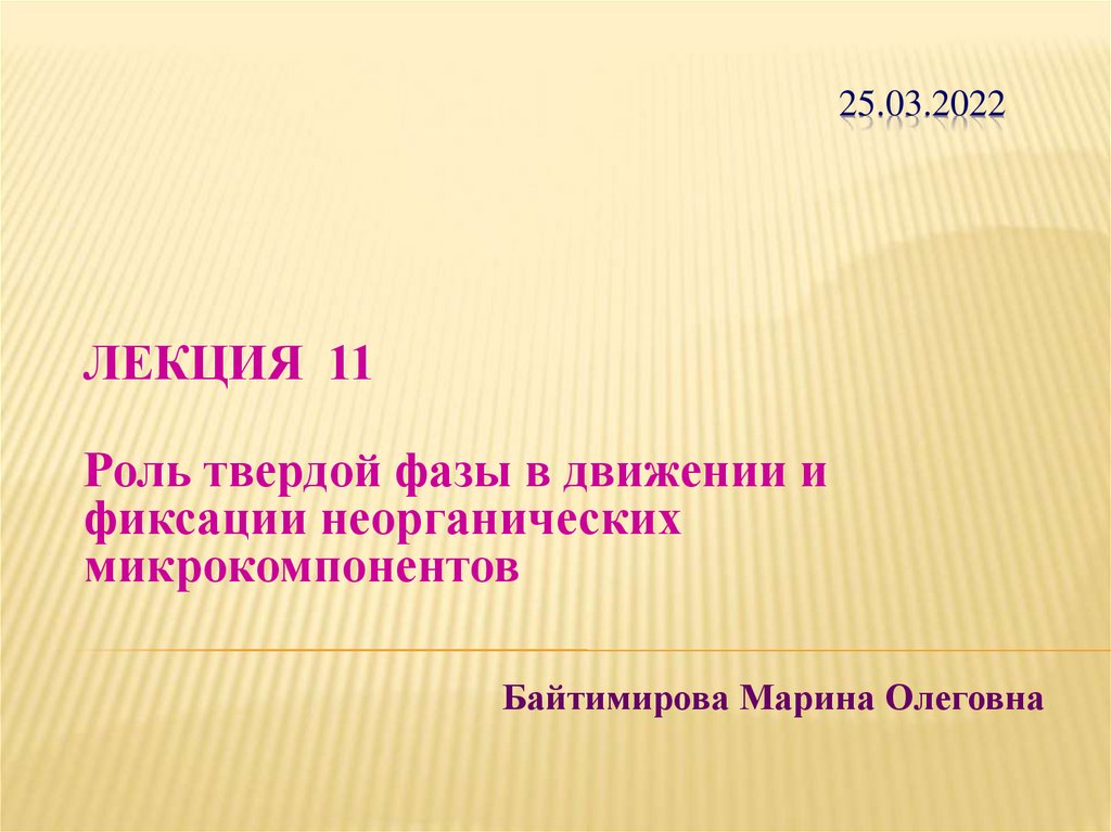 Роль твердой фазы в движении и фиксации неорганических микрокомпонентов. Лекция 11