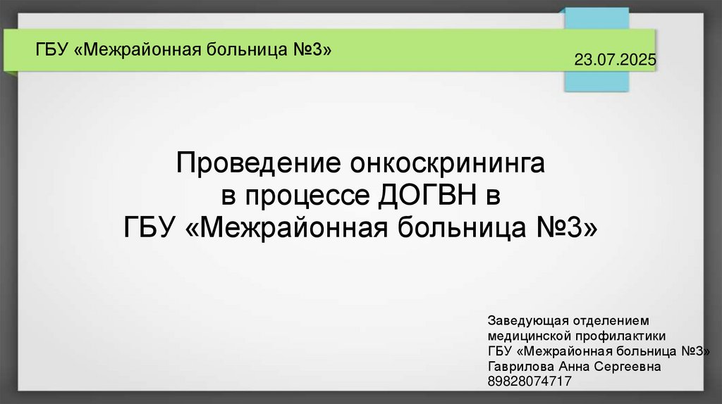 Проведение онкоскрининга в процессе ДОГВН в ГБУ «Межрайонная больница №3»