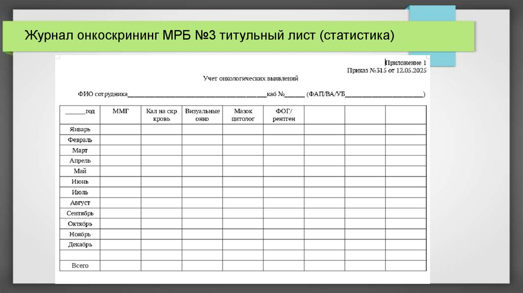 Журнал онкоскрининг МРБ №3 титульный лист (статистика)21.