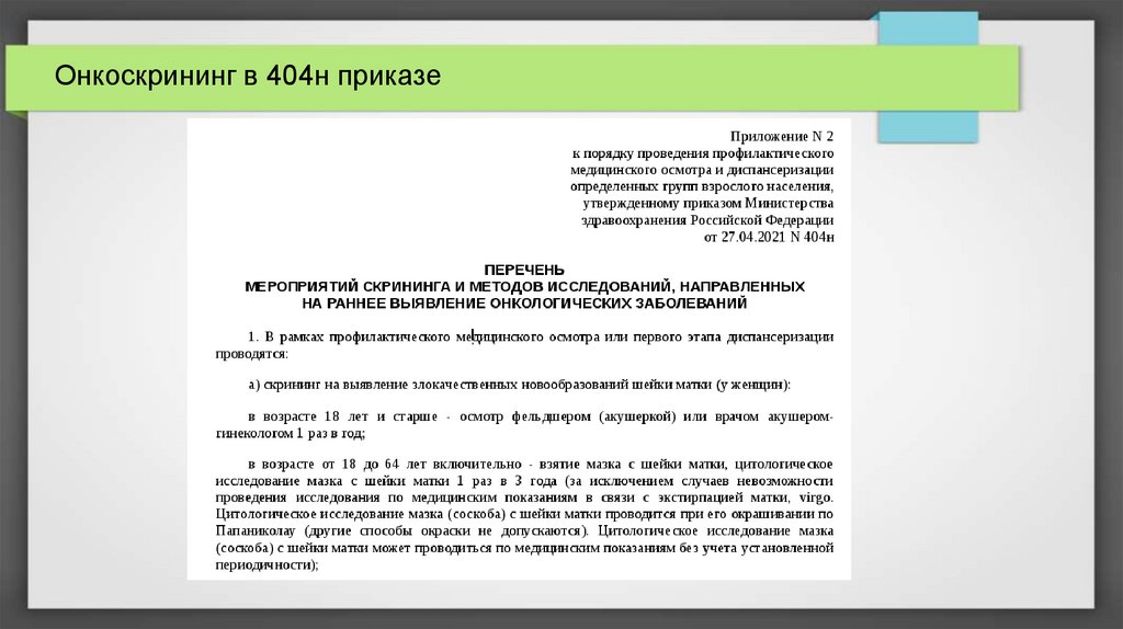 Онкоскрининг в 404н приказе4.