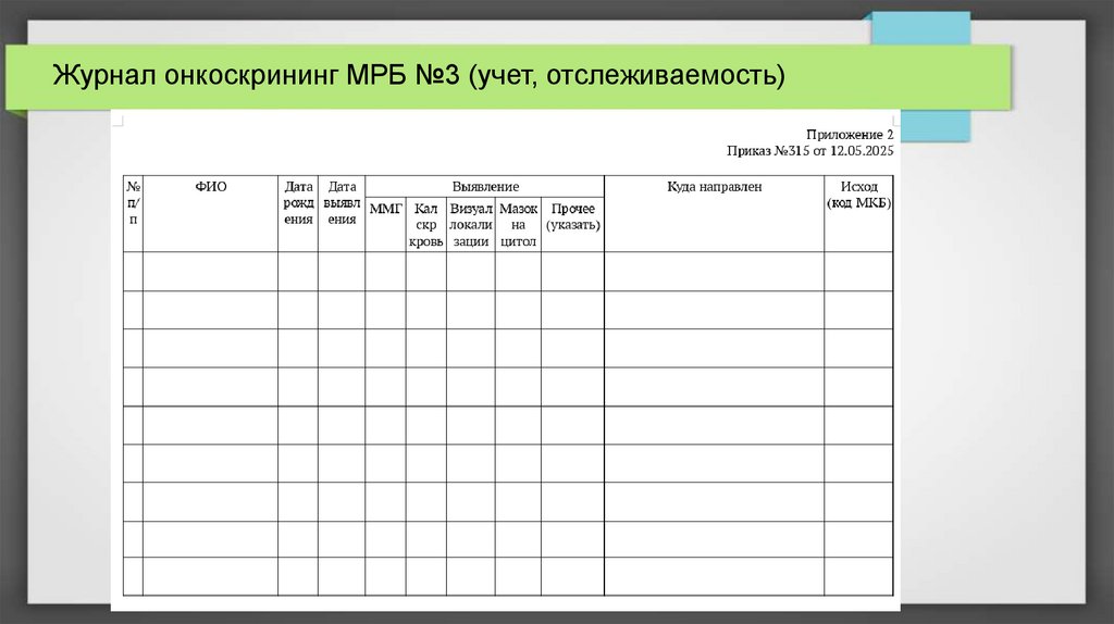 Журнал онкоскрининг МРБ №3 (учет, отслеживаемость)22.