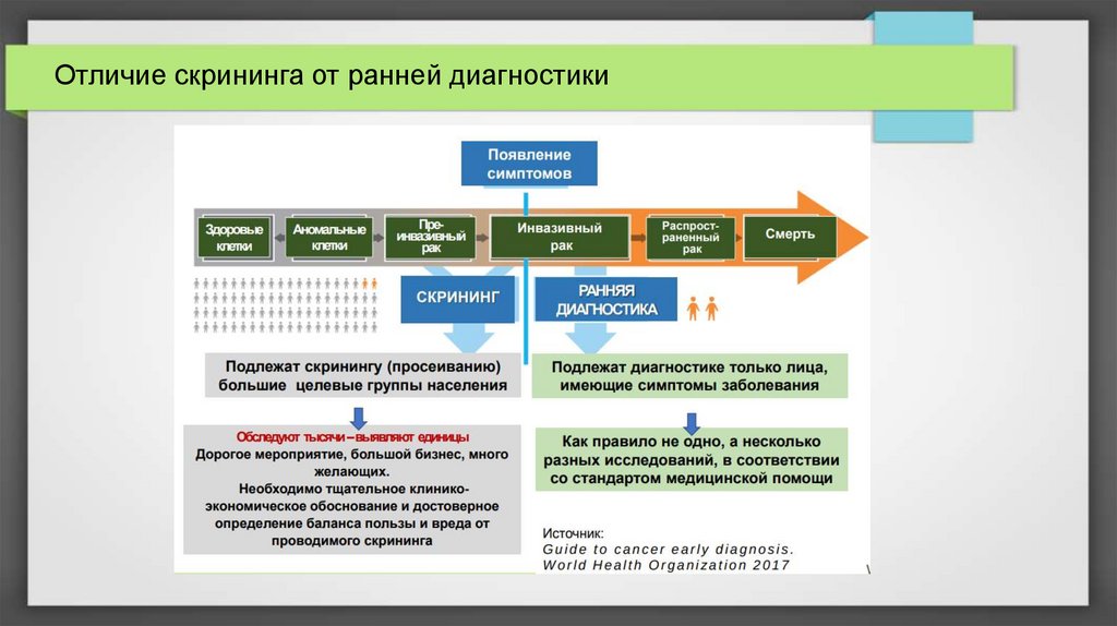 Отличие скрининга от ранней диагностики6.