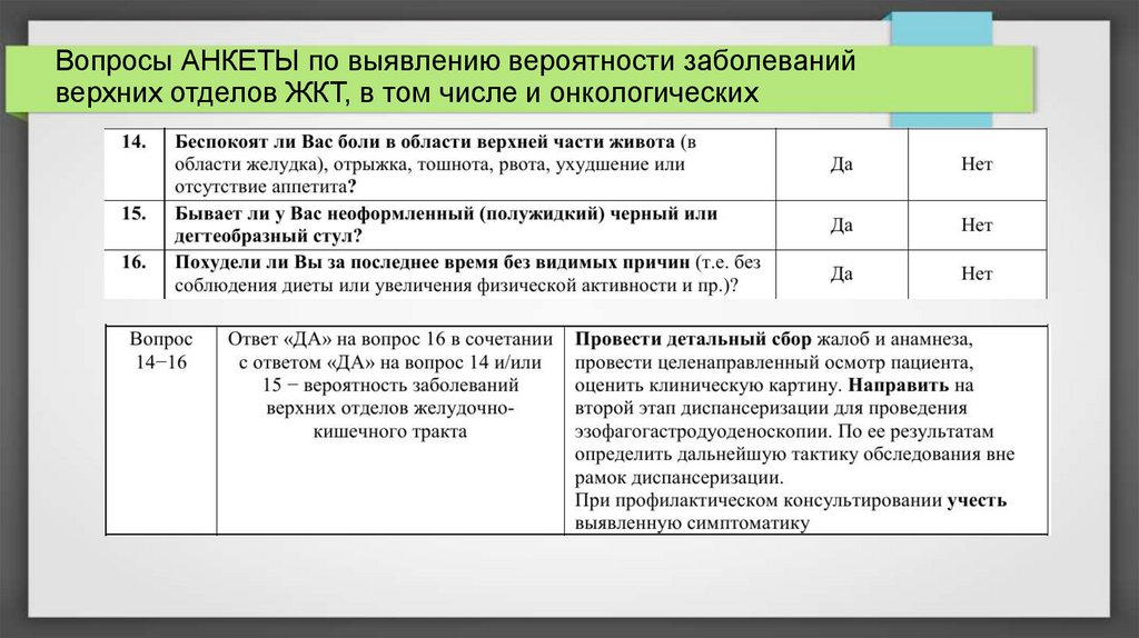 Вопросы АНКЕТЫ по выявлению вероятности заболеванийверхних отделов ЖКТ, в том числе и онкологических