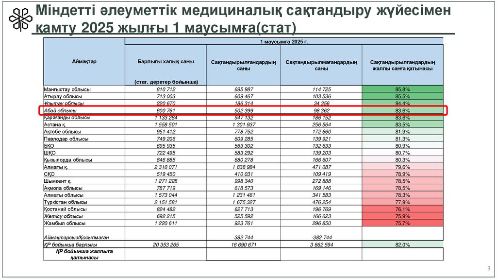 23. Міндетті әлеуметтік медициналық сақтандыру жүйесімен қамту 2025 жылғы 1 маусымға(стат)