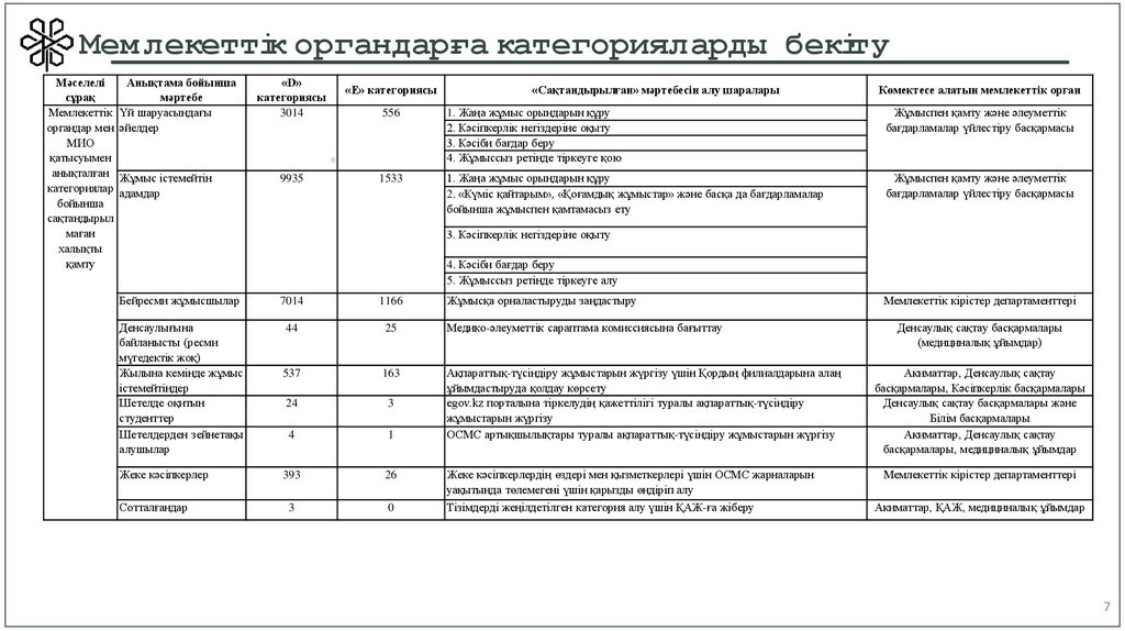 Мем лекеттік органдарға категорияларды бекітуМәселелі